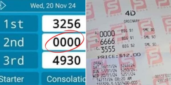 ‘0000’ number combination wins 2nd prize in 20 Nov 4D draw