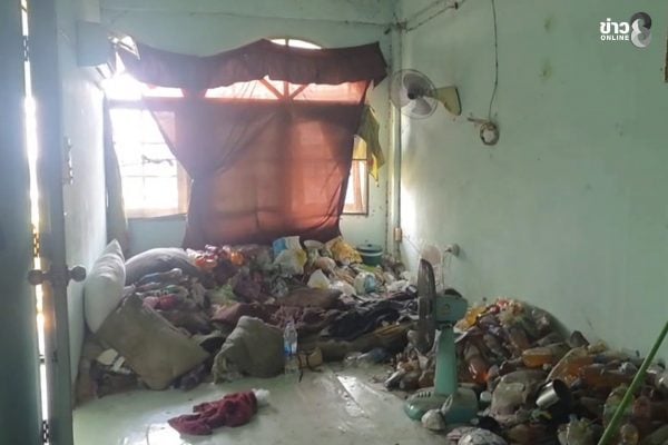 His room was filled with piles of garbage, including over 200 bottles filled with urine, reports Thailand’s Channel 8.