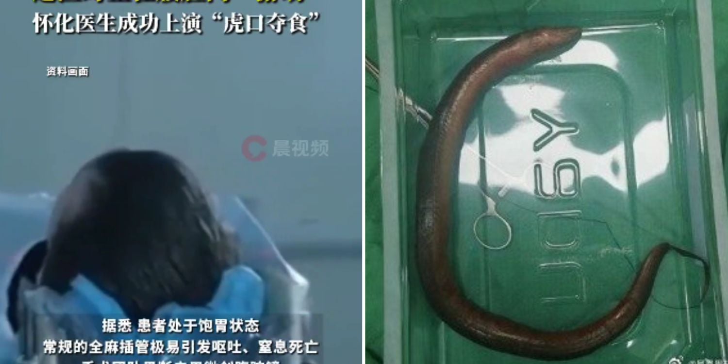 A 30-year-old man in Huaihua, Hunan Province, China, left doctors speechless after they found a large, live eel lodged inside his body.