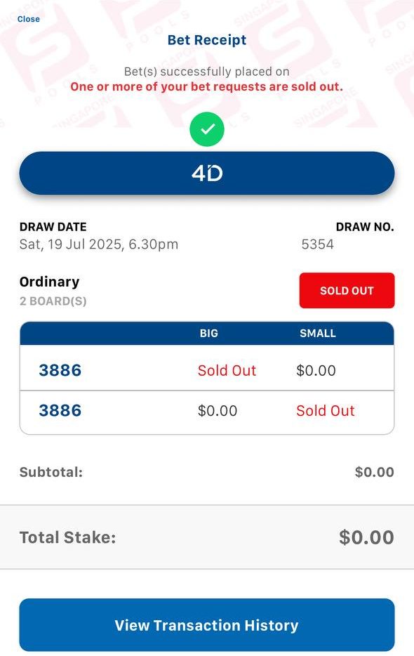 Hilariously, the number ‘3886’ was sold out for the 4D draw the following day.