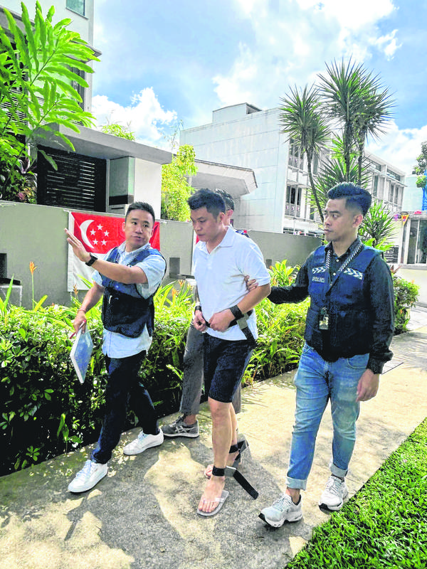 On Thursday (14 Aug) morning, the four men were escorted in pairs to different locations for case reconstruction.