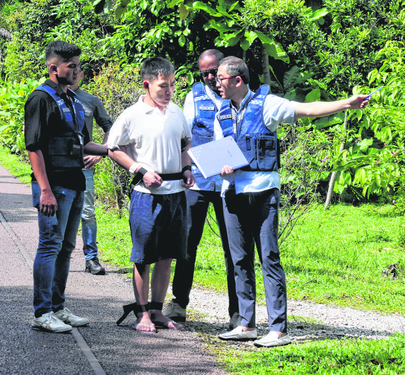 About an hour later, the other two suspects — 41-year-old Yang Chao and 36-year-old Zhou Yinggui — were brought to Laurel Wood Avenue, near Greenleaf Forest, where some clothing items had reportedly been found.