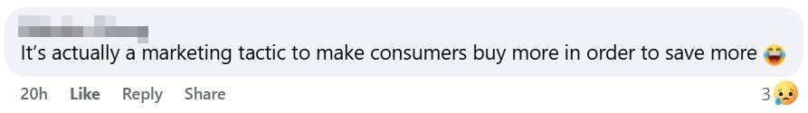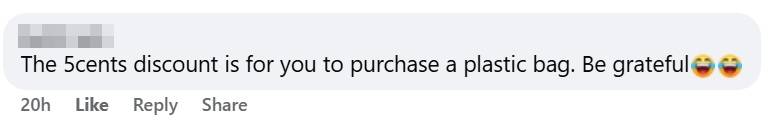 Others leaned into humour, with one Facebook user joking that the OP should be “grateful”, as the five cents saved could go towards buying a plastic bag.