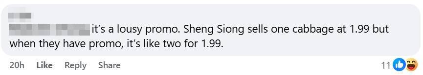 Another compared it unfavourably to a promotion at another supermarket, where two cabbages were allegedly sold for S$1.99.