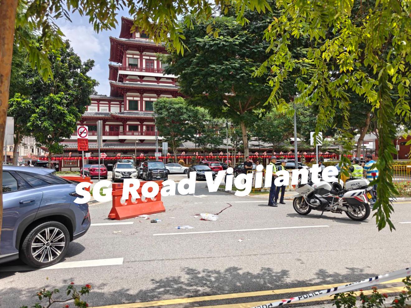 In pictures from SG Road Vigilante, blood was seen on the road. Online posts identified the vehicle involved to be a BYD Sealion 7.