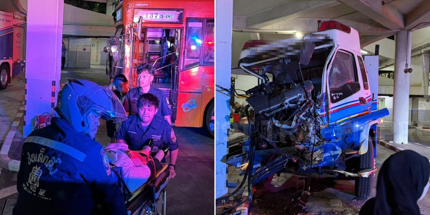 On 13 Jan evening, the accelerator on a bus in Thailand jammed, causing the vehicle to crash straight into a parked fire engine.