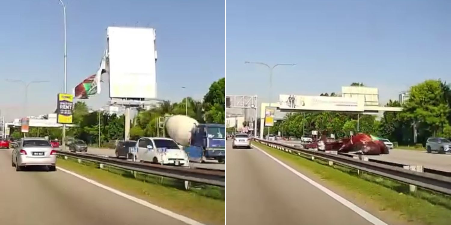 Milo ad detaches from billboard & lands on car on Malaysian Federal Highway