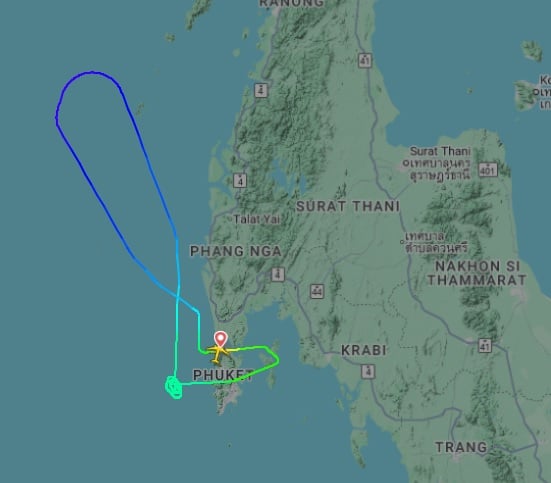 According to FlightRadar24, AI 379 left Phuket at around 9.30am and was headed towards New Delhi, India. After finding the bomb threat, the plane made a wide loop in the Andaman Sea before returning to the Thai island and went into a holding pattern as it awaited permission to make an emergency landing.