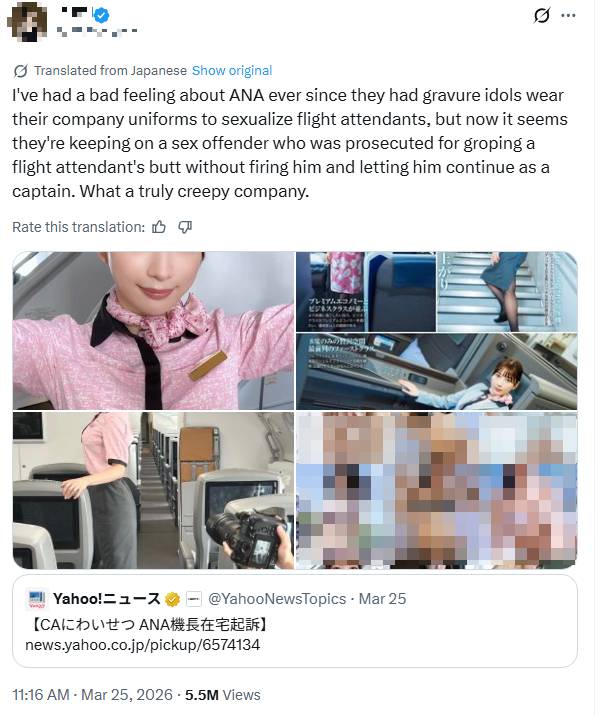Several pointed to ANA’s previous collaboration with gravure idols, saying it contributed to the sexualisation of its flight attendants, which they believe led to the harassment.