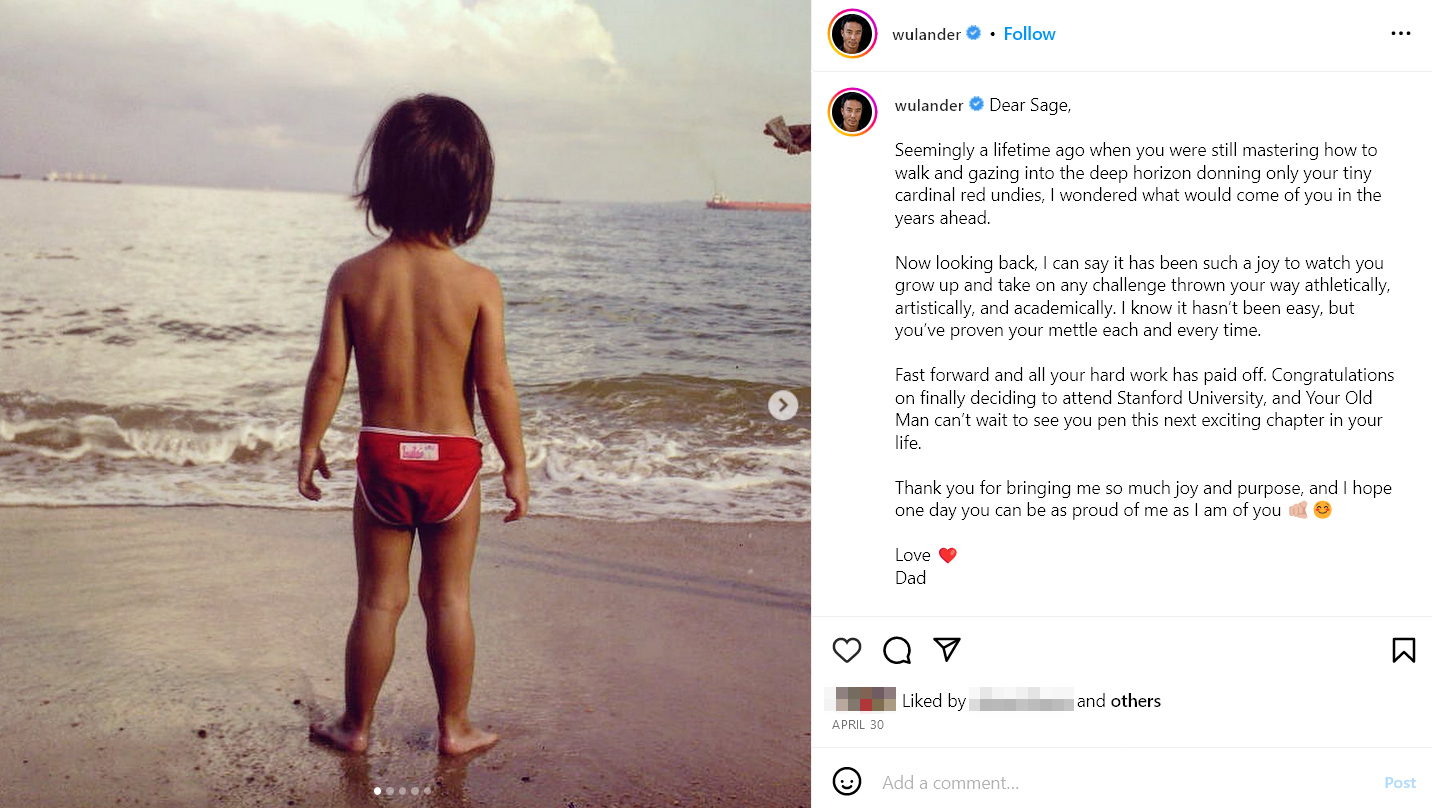 On 30 Apr, Allan took to Instagram to congratulate Sage on deciding to go to Stanford University.
