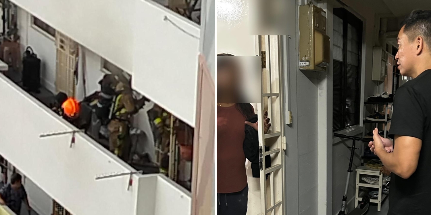 According to Shin Min Daily News, a neighbour noticed several firefighters positioned outside the unit’s front door after hearing a commotion.