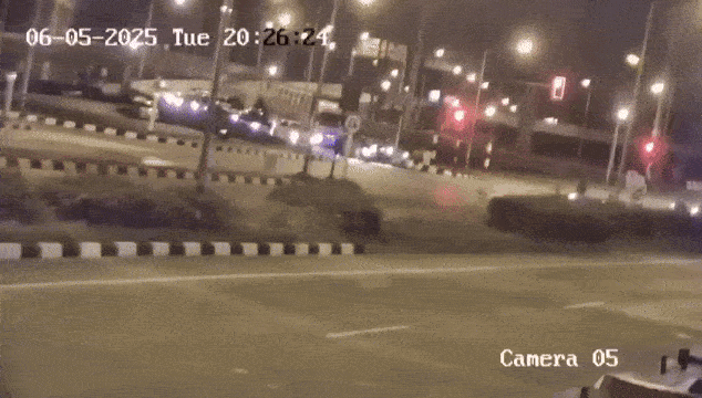 Surveillance footage shows a group of motorcyclists passing through a green light when a speeding ambulance from the opposite direction runs the red and collides with them.