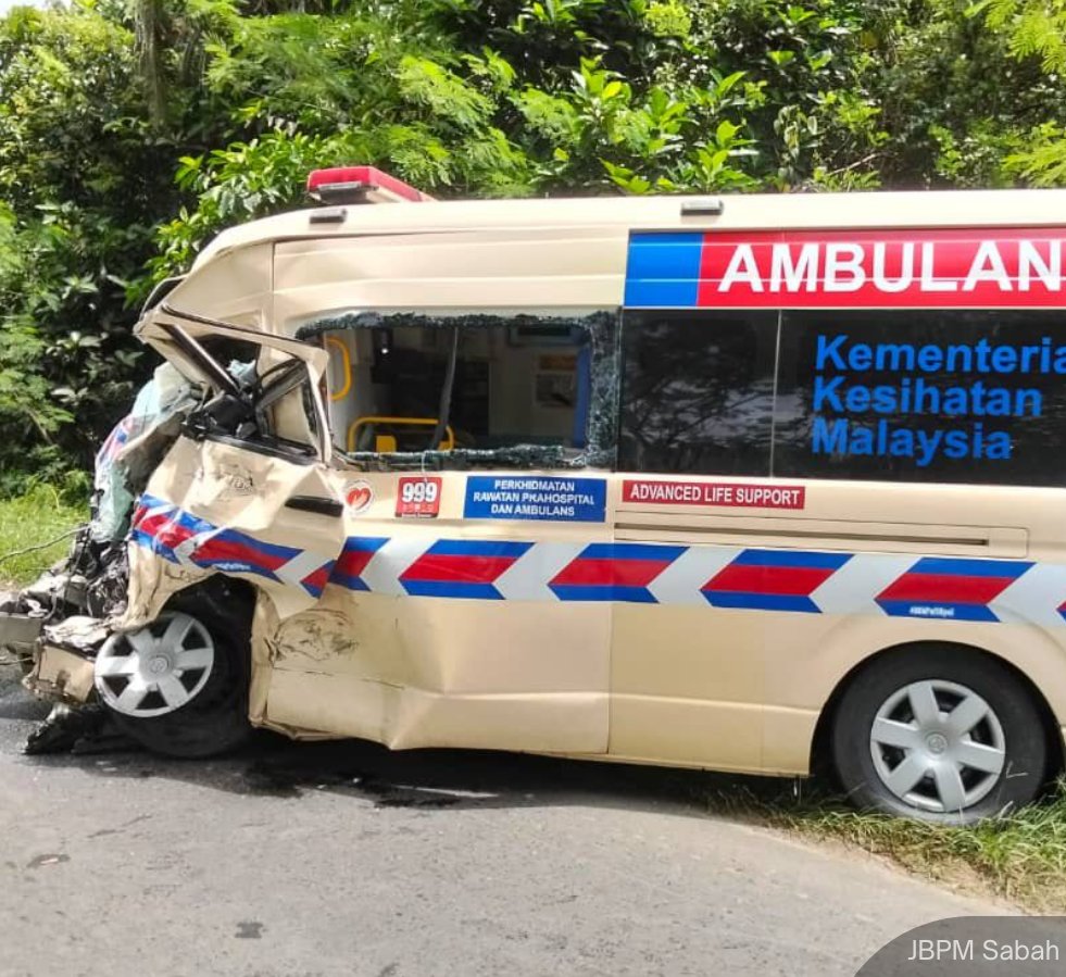 While en route to a hospital in Kota Kinabalu, the ambulance collided with a van travelling in the opposite direction.