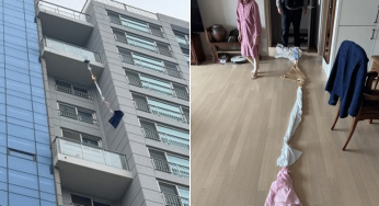 The two men left the scene, leaving the damaged standee in a heap on the floor.