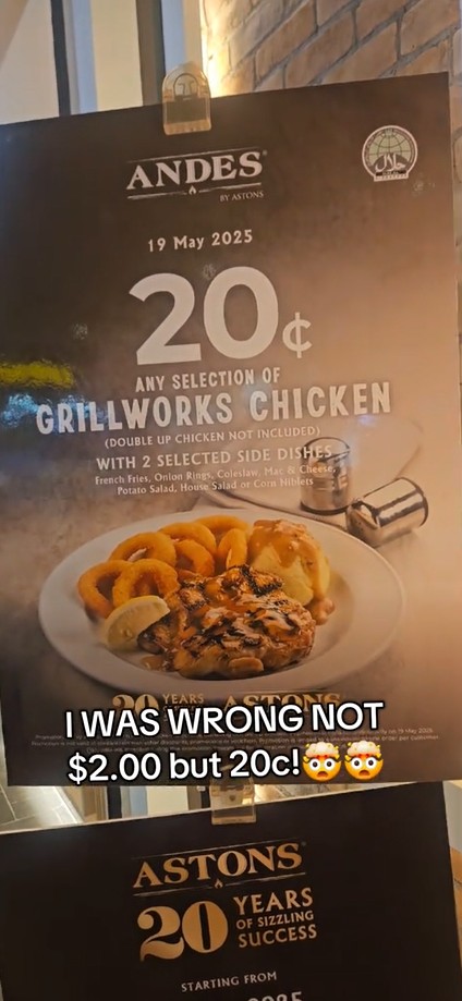 ANDES by Astons offered a grilled chicken deal for just S$0.20 yesterday (19 May), sending Singaporeans into a queueing frenzy.