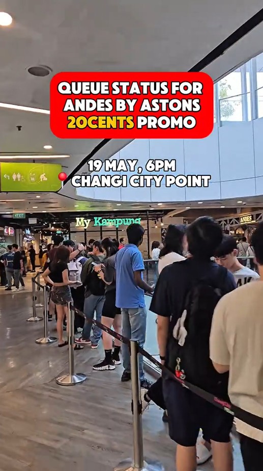 A video by ‘simideals’ at the Changi City Point ANDES outlet at 6pm showed a queue that wound around several shops on the same level.