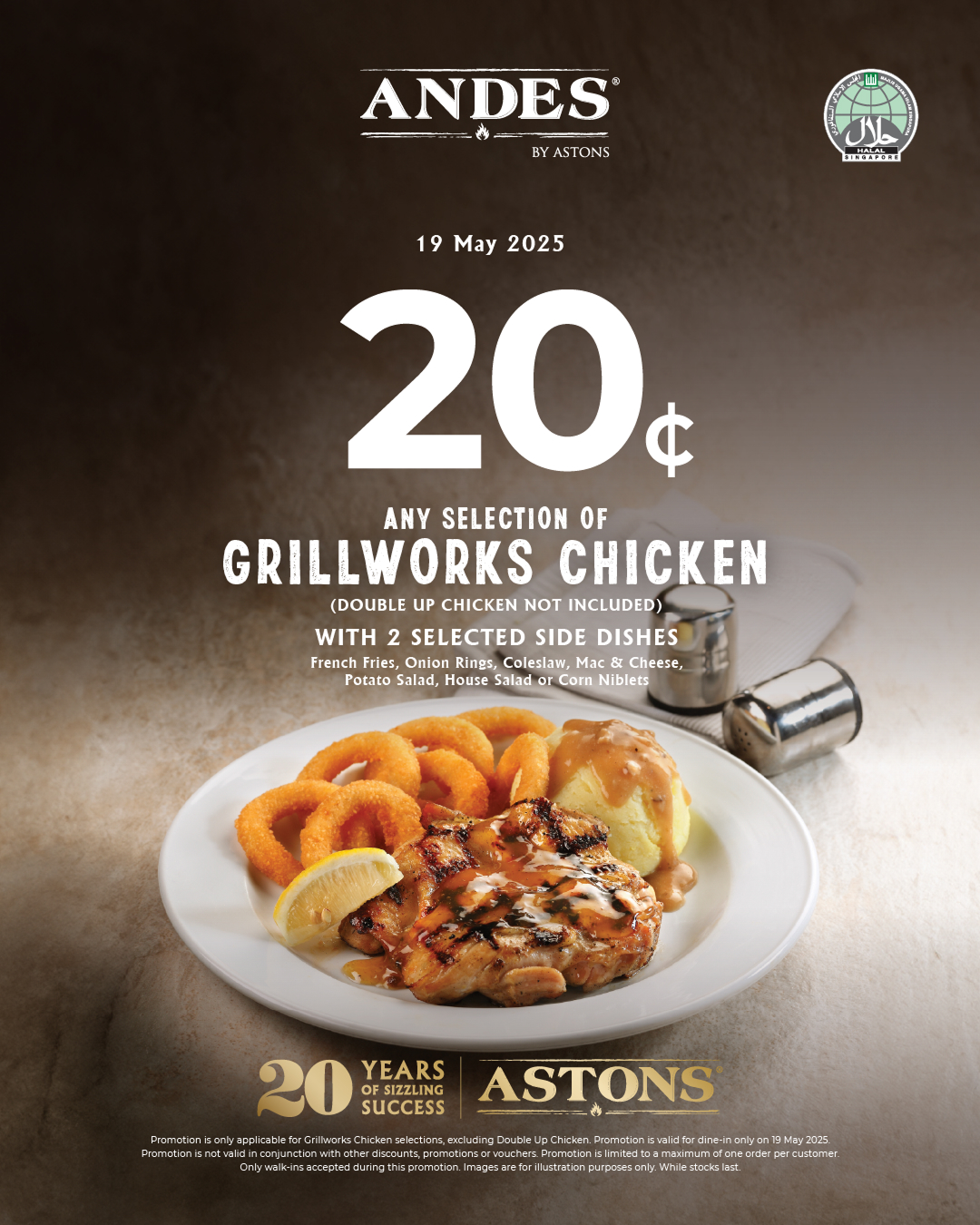 ANDES by Astons offers S$0.20 grilled chicken on 19 May