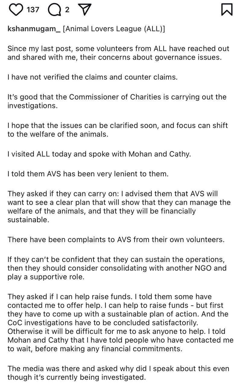 Shanmugam says animal welfare group needs sustainable plan