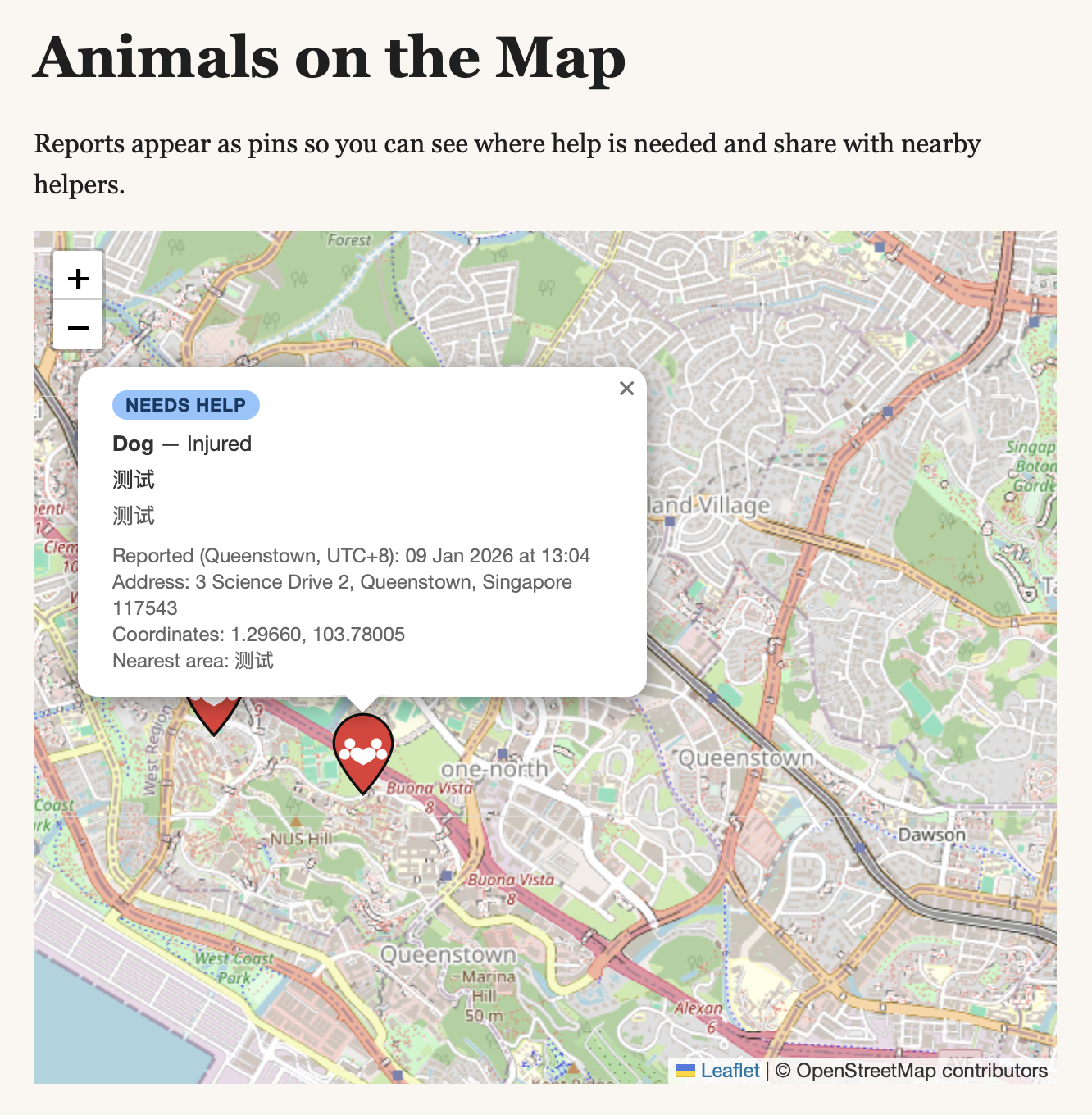 Pawsome keeps the process straightforward so that neighbours, shelters, and responders can respond immediately. Ultimately benefiting wildlife in and out of Singapore.