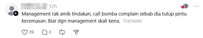 Translation: Management didn’t take action, called the fire department to complain because they closed the emergency door. Let the management deal with it.