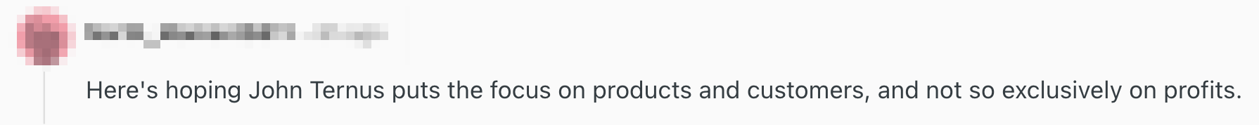 One netizen acknowledged Mr Ternus’ accomplishments so far in the company.