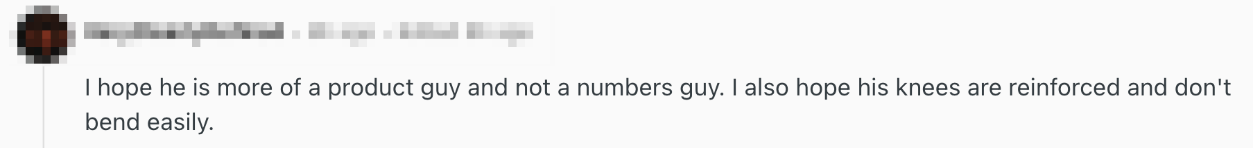 Others hoped that the new CEO would bring focus to the products, rather than on numbers and profits, and that he can handle the pressures and rise to the challenges of leadership.