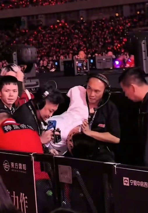 Videos of the incident on XiaoHongShu showed the singer stepping into thin air and falling sideways off the stage.