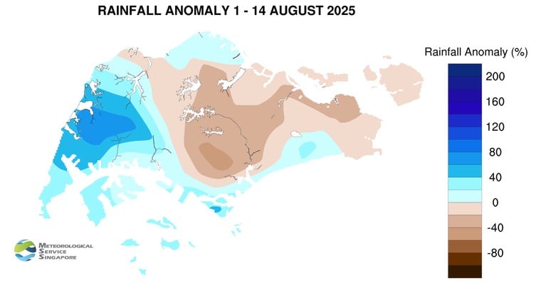 Over the first half of August, Singapore experienced localised short-duration thundery showers on most afternoons.