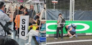 2 months ago Woman spotted carrying ‘DRS’ sign on MRT after F1, other fans seen peeling decals off track walls