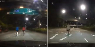 5 years ago Driver Brakes To Avoid Hitting Cyclists At Bishan Flyover, Riders Quickly Move To Left Lane