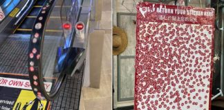 4 years ago Waterway Point Escalator Handle Covered With Stickers, Public Urged To Be More Responsible