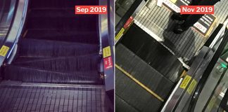 6 years ago Waterway Point Escalator ‘Attacked’ By Breakdown Monster Again, 2 Months After First ‘Assault’
