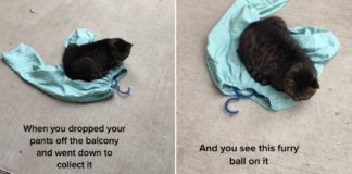 4 years ago Man Accidentally Drops Pants From Balcony, Community Cat Claims Clothing By Sitting On It