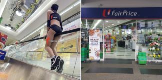 2 years ago Person rides down Bukit Merah FairPrice travelator by sitting on railing, FairPrice sanitises handles