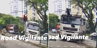 3 years ago Sembcorp Truck Crashes Into Traffic Lights After Swerving, Pedestrian Runs To Safety Before Crash