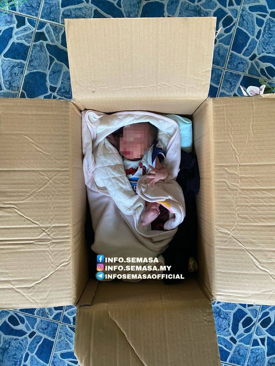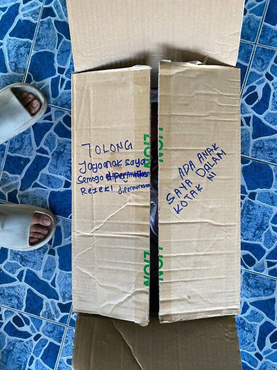 A baby girl was found abandoned in a cardboard box outside a house in Membakut, Sabah, Malaysia early on Tuesday morning (22 April).