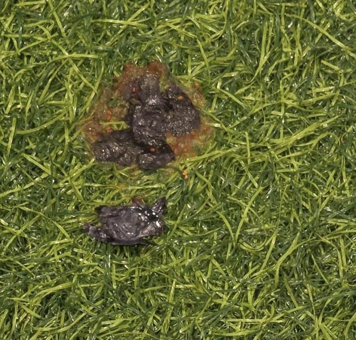 Another photo showed what appeared to be poo on the fake grass flooring.