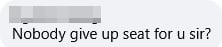One person also noted that nobody seemed to have given up their seat to the retired 67-year-old.