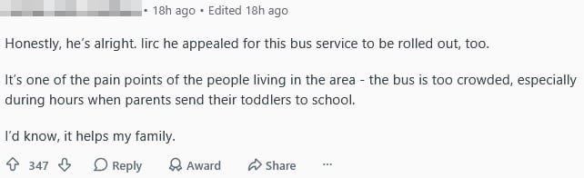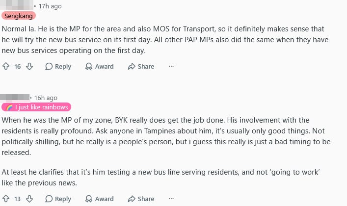One commenter also praised Mr Baey, calling him a “people’s person” in Tampines. They attributed the new bus service lining up with the “trend” as just bad timing.