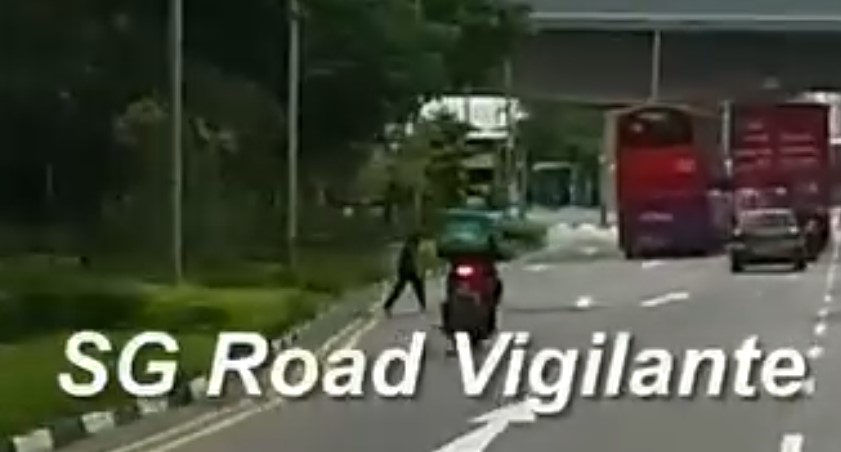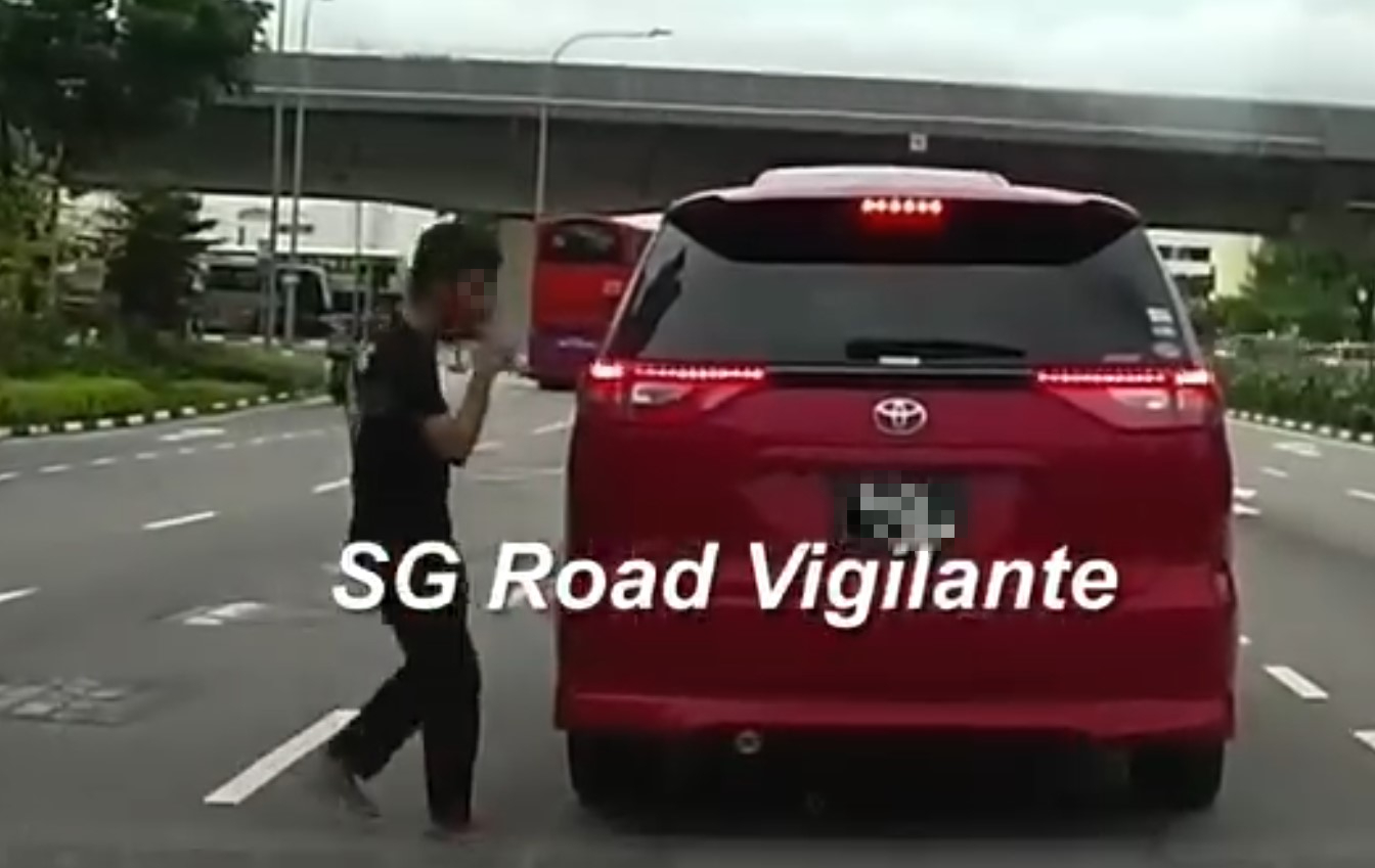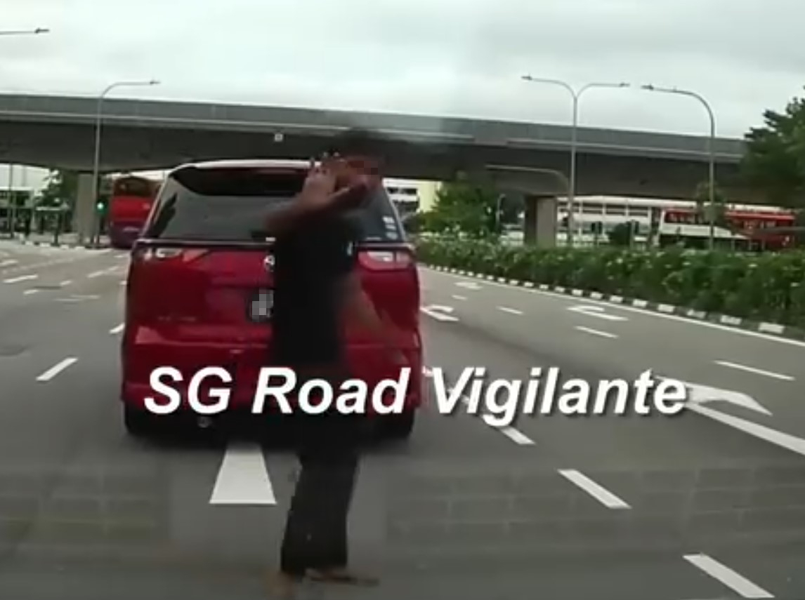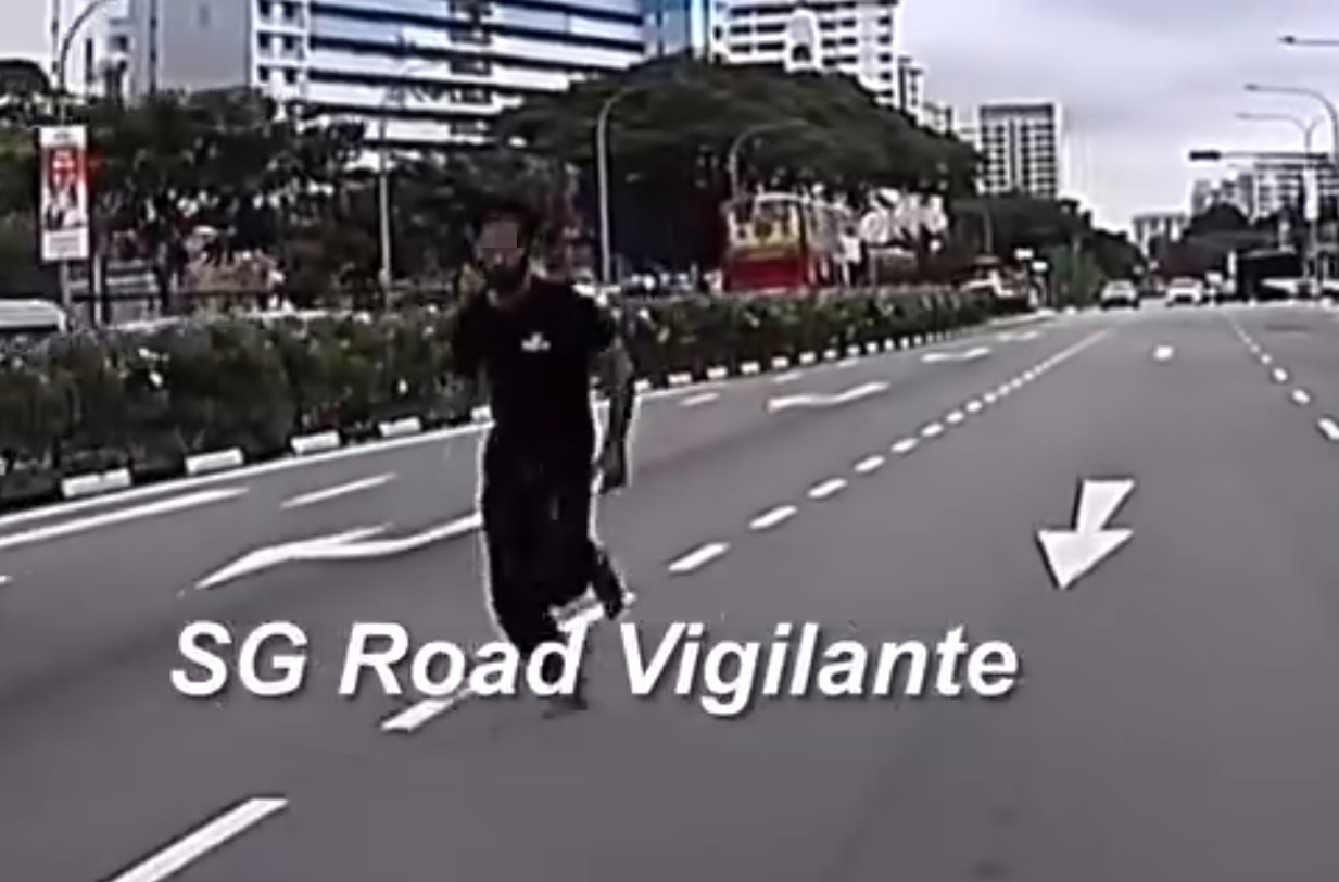 According to a video posted by SG Road Vigilante on Facebook, he even chased after a car that avoided him by driving away.