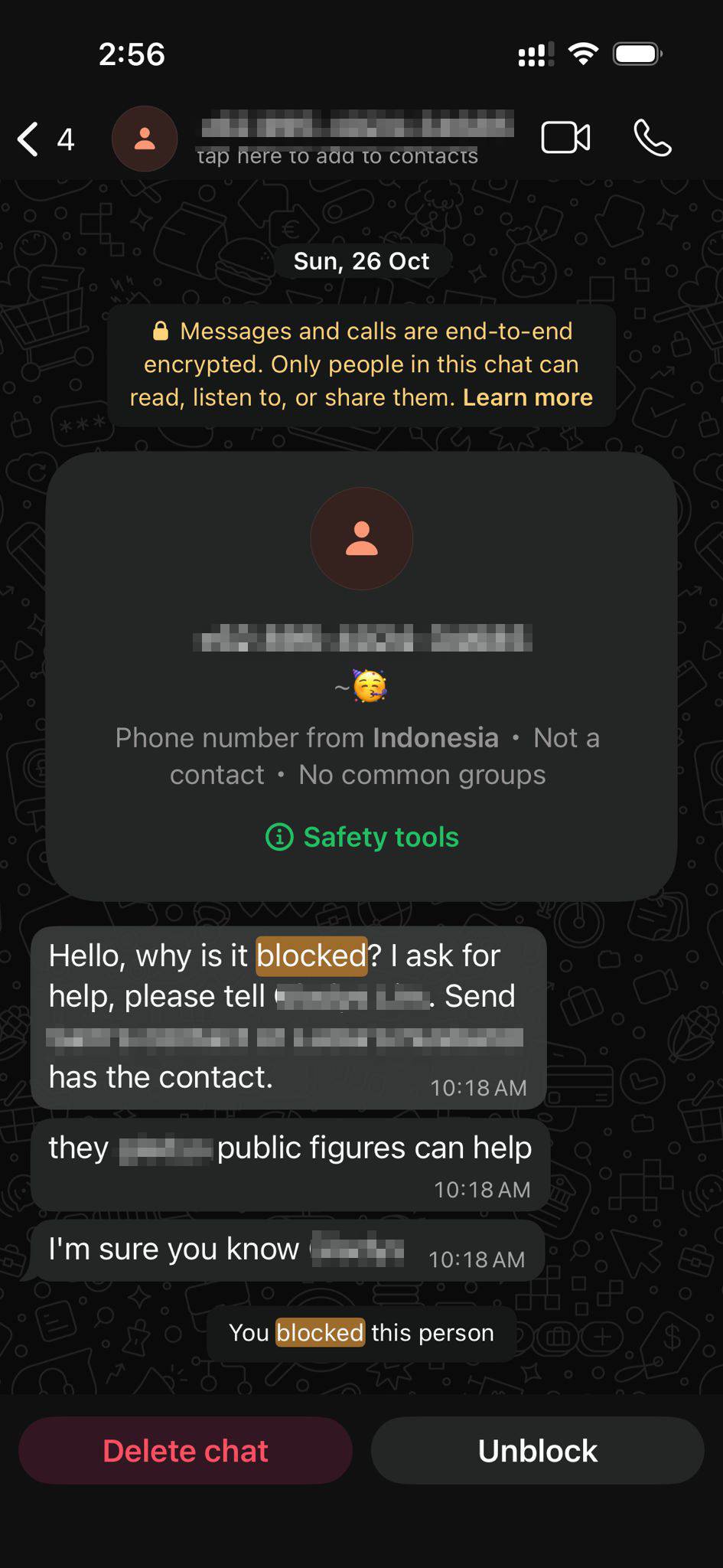 The business said A contacted them via WhatsApp, Telegram, and repeated spam calls. This also allegedly occurred during livestreams with Lovelle.