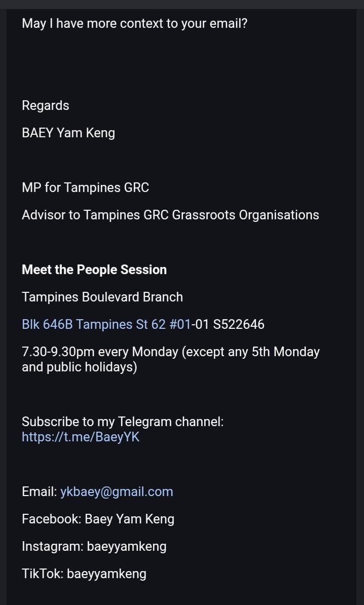 In a surprising development, Lovelle said she discovered in March that A had somehow contacted Tampines MP Baey Yam Keng.