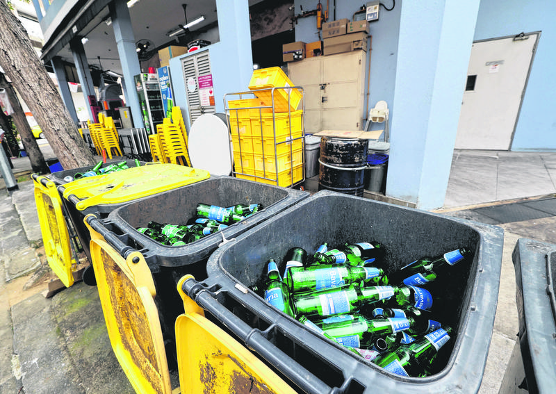 Piles of empty beer bottles have been taking over recycling bins outside several coffeeshops in Singapore, leaving management scrambling for solutions.