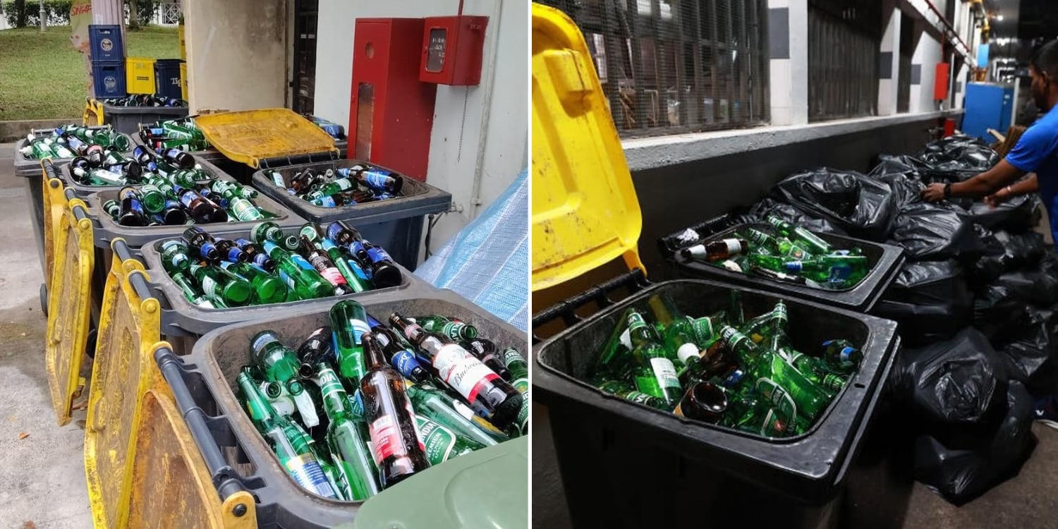 Piles of empty beer bottles have been taking over recycling bins outside several coffeeshops in Singapore, leaving management scrambling for solutions.