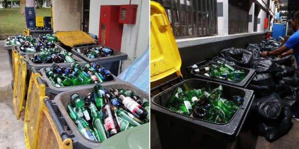 Beer bottles pile up in recycling bins outside S’pore coffeeshops, recycling company allegedly facing issues