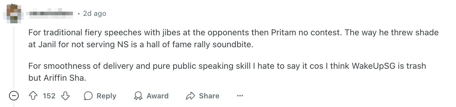 In the r/askSingapore subreddit, a thread titled “Who is the best rally speaker so far?” has sparked considerable discussion, amassing over 120 comments as netizens shared their opinions, with several names emerging as the frontrunners.