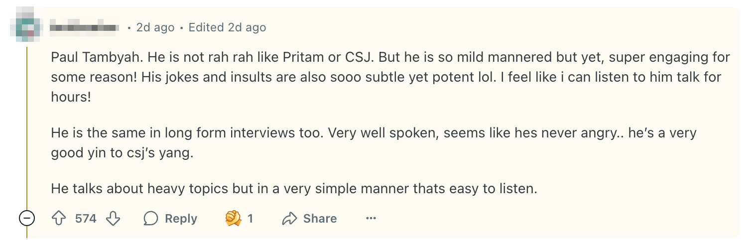 Another Redditor remarked that SM Lee “brings across steady points” and embodies the “good old-fashioned, polished speaker type”.