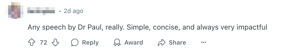 Another user noted that any speech by Dr Tambyah is “simple, concise, and always very impactful”.
