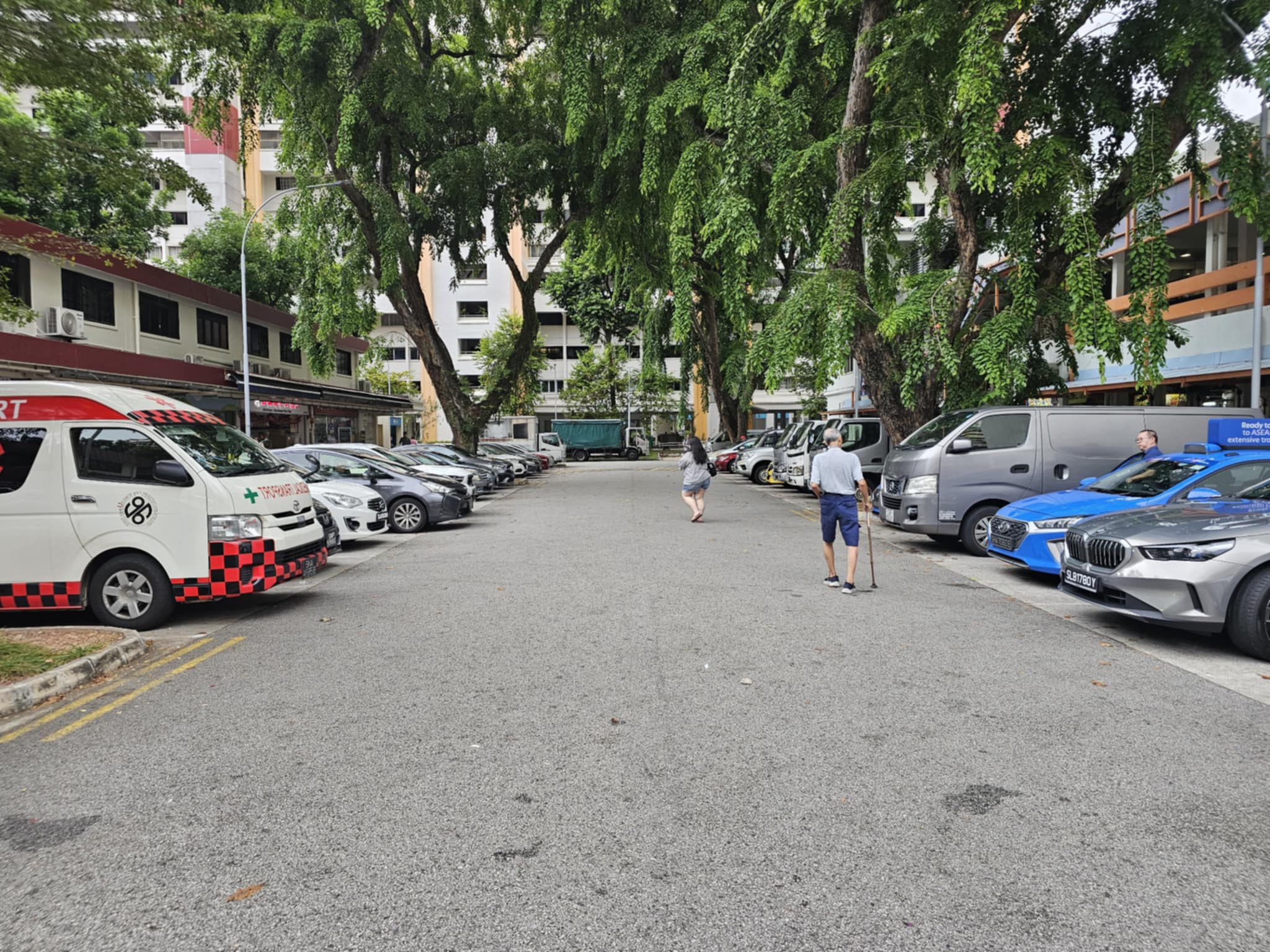 The ambulance later arrived at the entrance of the two-lane carpark behind Block 111, just as a delivery lorry was pulling in.