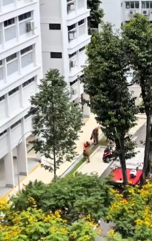 The Singapore Civil Defence Force (SCDF) was already at the scene, with a fire engine seen and several officers rushing into the block.
